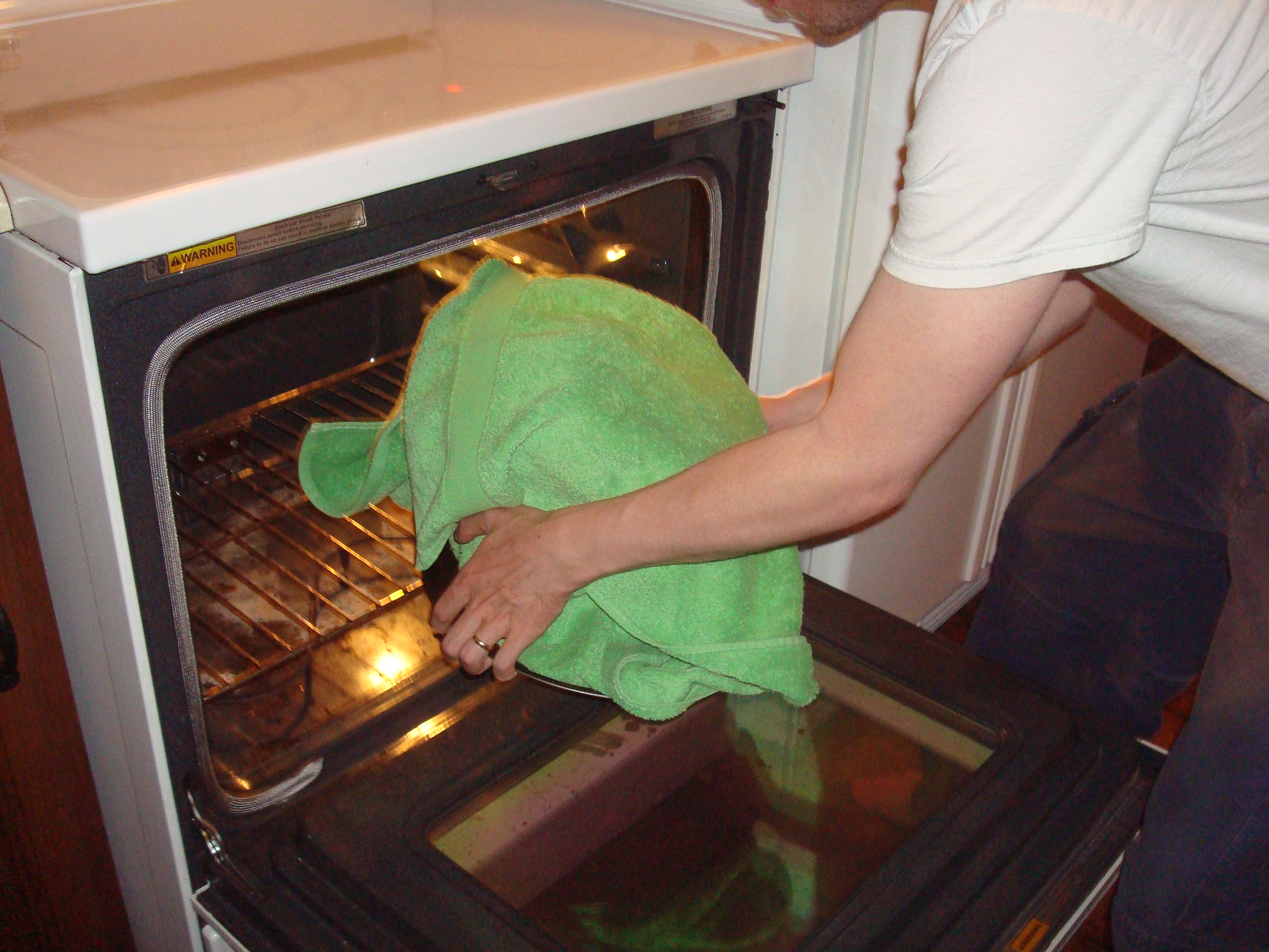 • Heat your oven to 250 degrees, then turn it off.  Turn the oven light on to maintain heat.