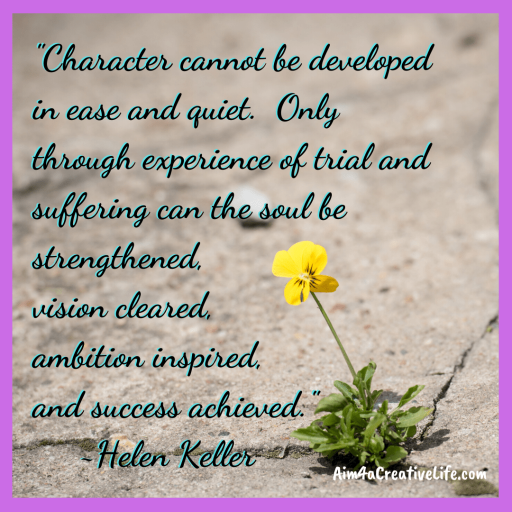 So yeah, it’s not quiet here in the wee hours of the morning, I feel like I’m suffering, and now I’m looking for that vision clearing, ambition rising, and achieving success. If it doesn’t kill you, it can make you stronger if you let it, right? So here’s to my soul strengthening! Helen Keller’s not here to thank, but if she were I’d let her know that was just the inspiration I needed to not waver into “poor me” mode this morning! If you’re in pain today too, physical or emotional, may your soul grow stronger through it. Beauty for ashes.