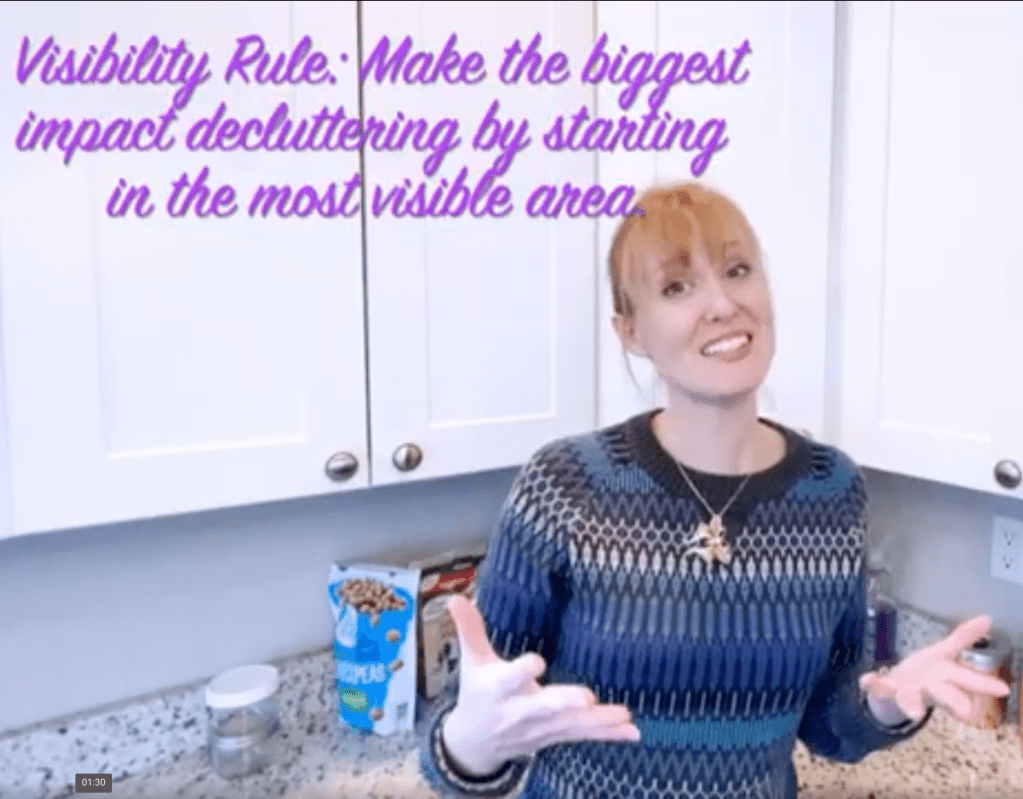 #1. Start wherever is the most cluttered! (The visibility rule!) At my house, that’s the snack area.